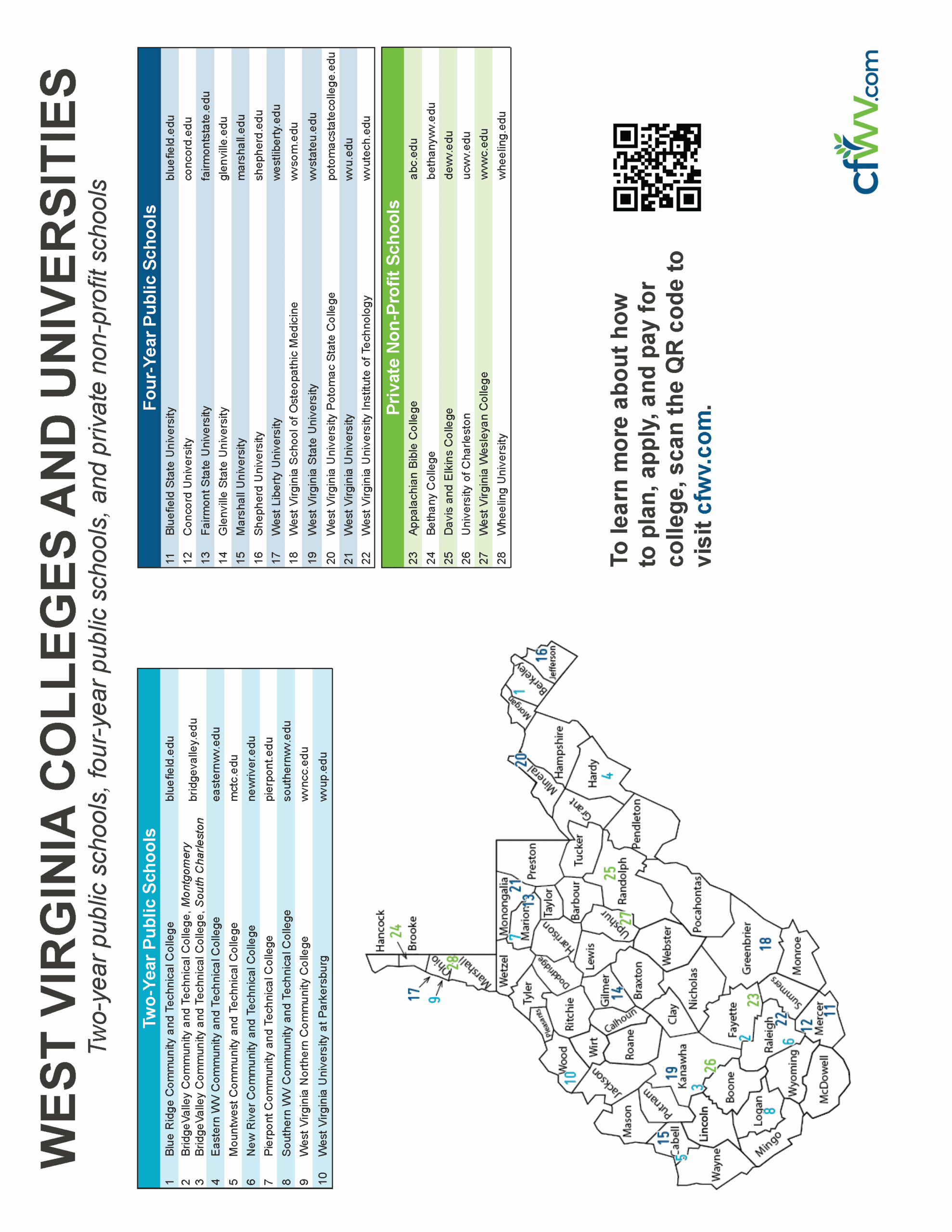 The CFWV outreach effort is led by the West Virginia Higher Education Policy Commission in coordination with the West Virginia Community and Technical College System, and the West Virginia Department of Education. CFWV aims to help all individuals in West Virginia go to college and succeed. The following initiatives are coordinated through the CFWV partnership: